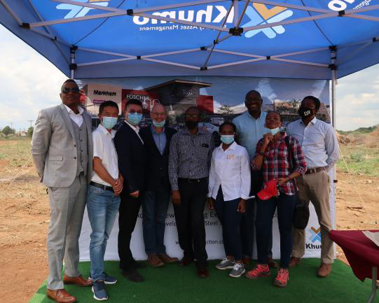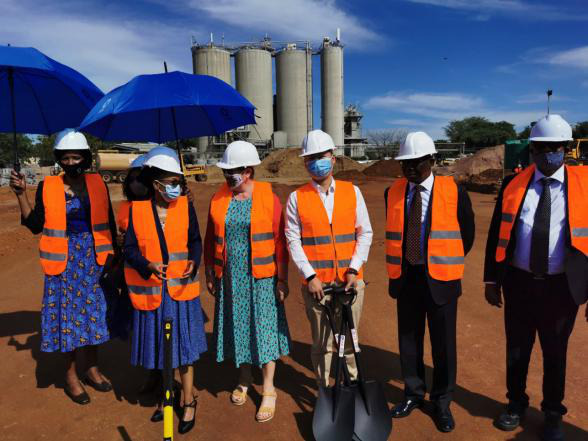 博茨瓦纳共和国投资、贸易及工业部部长佩琪·塞拉米女士(Peggy O. Serame)在博茨瓦纳发展集团总经理克罗斯·克西迪勒(Cross Kgosidiile)、德国驻博茨瓦纳大使玛吉特海尔威格、宝业博华公司总经理荣熠的陪同下,对位于博茨瓦纳首都哈博罗内西部地区的克鲁姆伯格仓库项目进行了实地视察,并参加开工破土仪式。