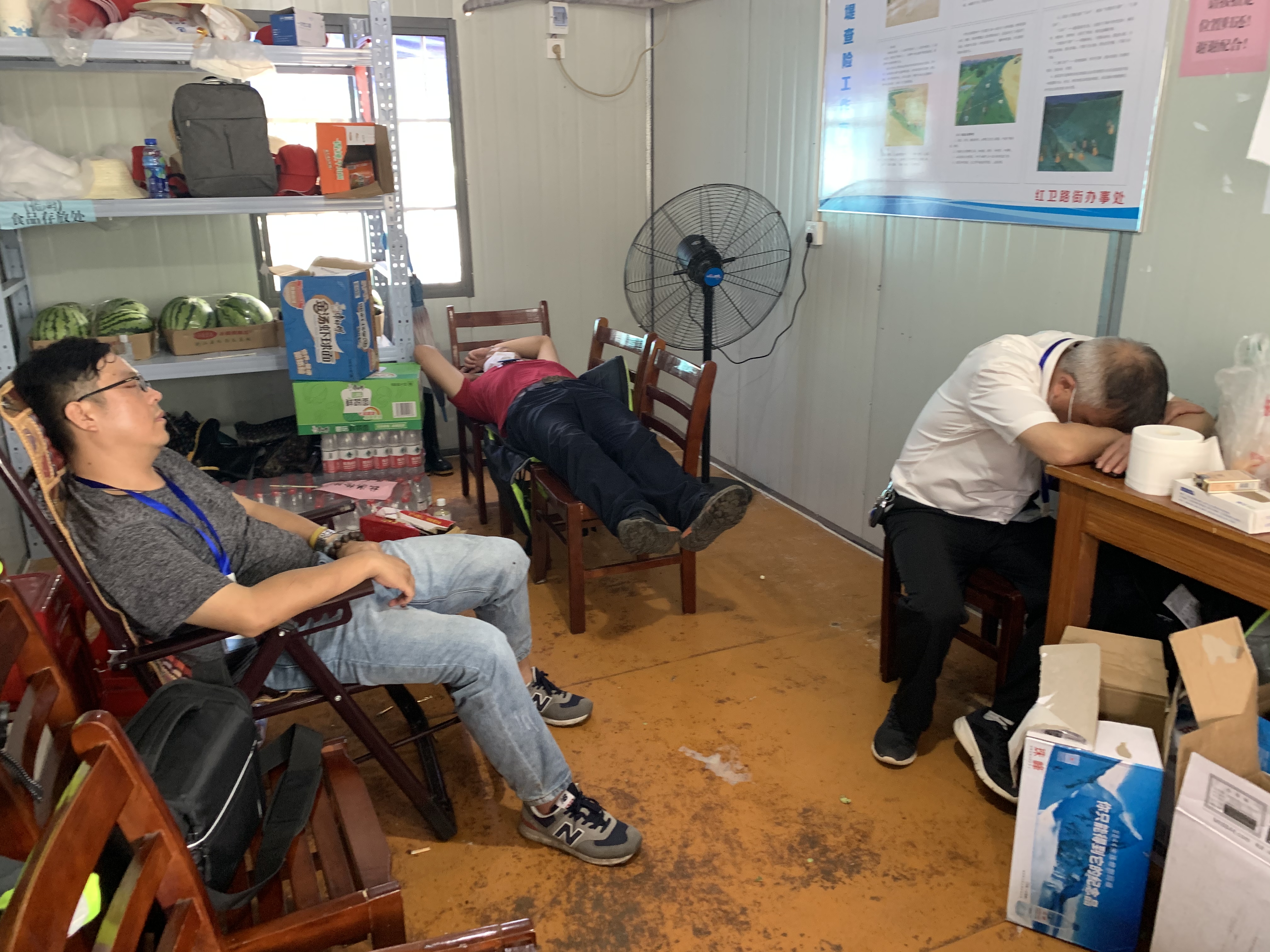 28岁的省建五公司杨晗临时受命,担任夜班带班值守领导,他安排布置任务、登记记录巡堤查险情况,有条有理、一丝不苟。担任夜班值守的多为三十岁以内的年轻骨干,年纪最小的22岁,才走出校门入职宝业,连续两次值守夜班,他们全力以赴,没有怨言。