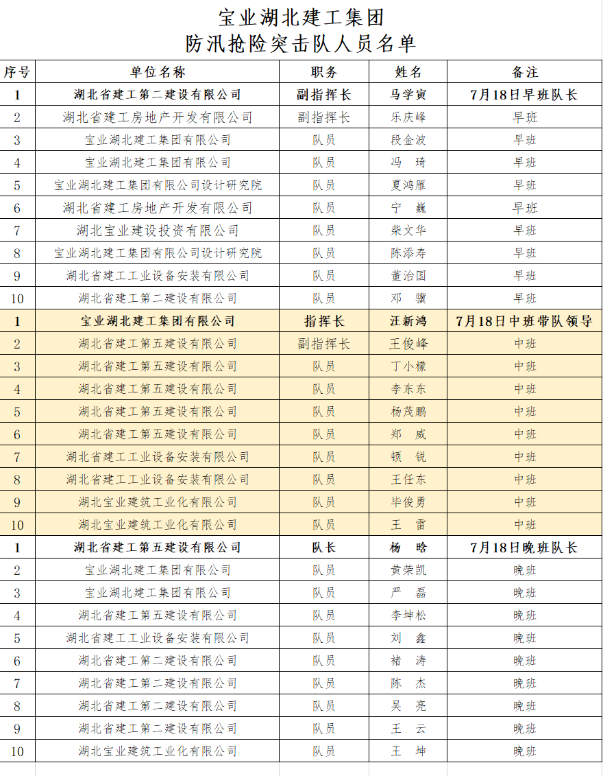 公司党委书记、总经理高林强调,作为武汉本土企业,我们守土有责,要守土尽责,坚决贯彻执行各级防汛指挥部的决策部署,坚决服从统一指挥调度,在人力、物力、财力上支持地方防汛工作。公司党员、骨干要带头冲锋向前,切实按要求做好防汛值守、巡堤查险,尽最大努力保卫人民群众生命财产安全,为防汛贡献宝业力量。