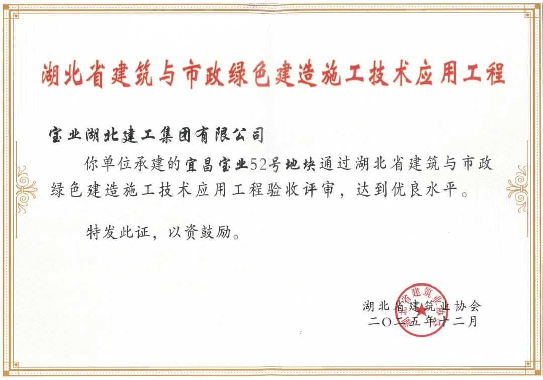 宜昌宝业52号地块通过湖北省建筑与市政绿色建造施工技术应用工程验收评审,达到优良水平。